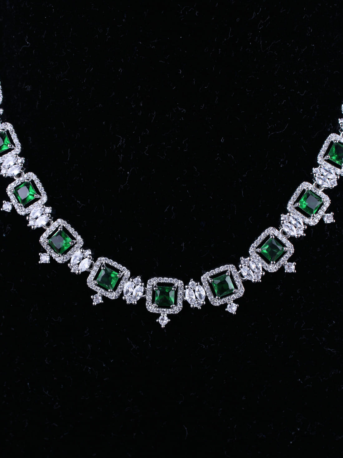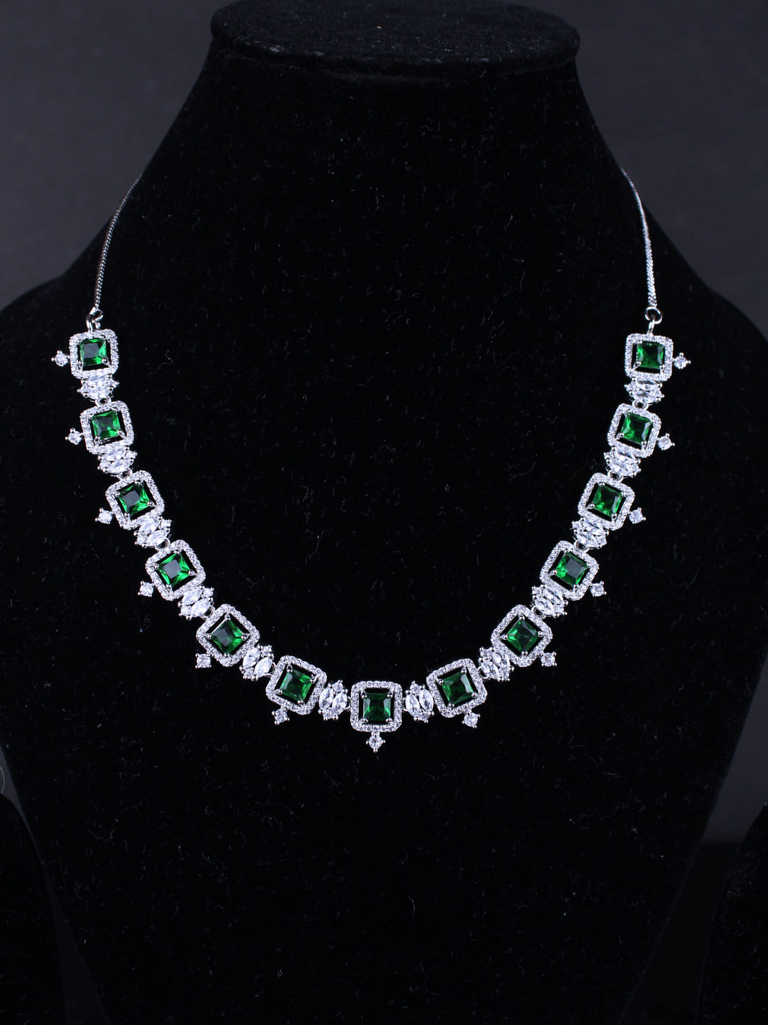 Silver  Color American Diamond Necklace Set