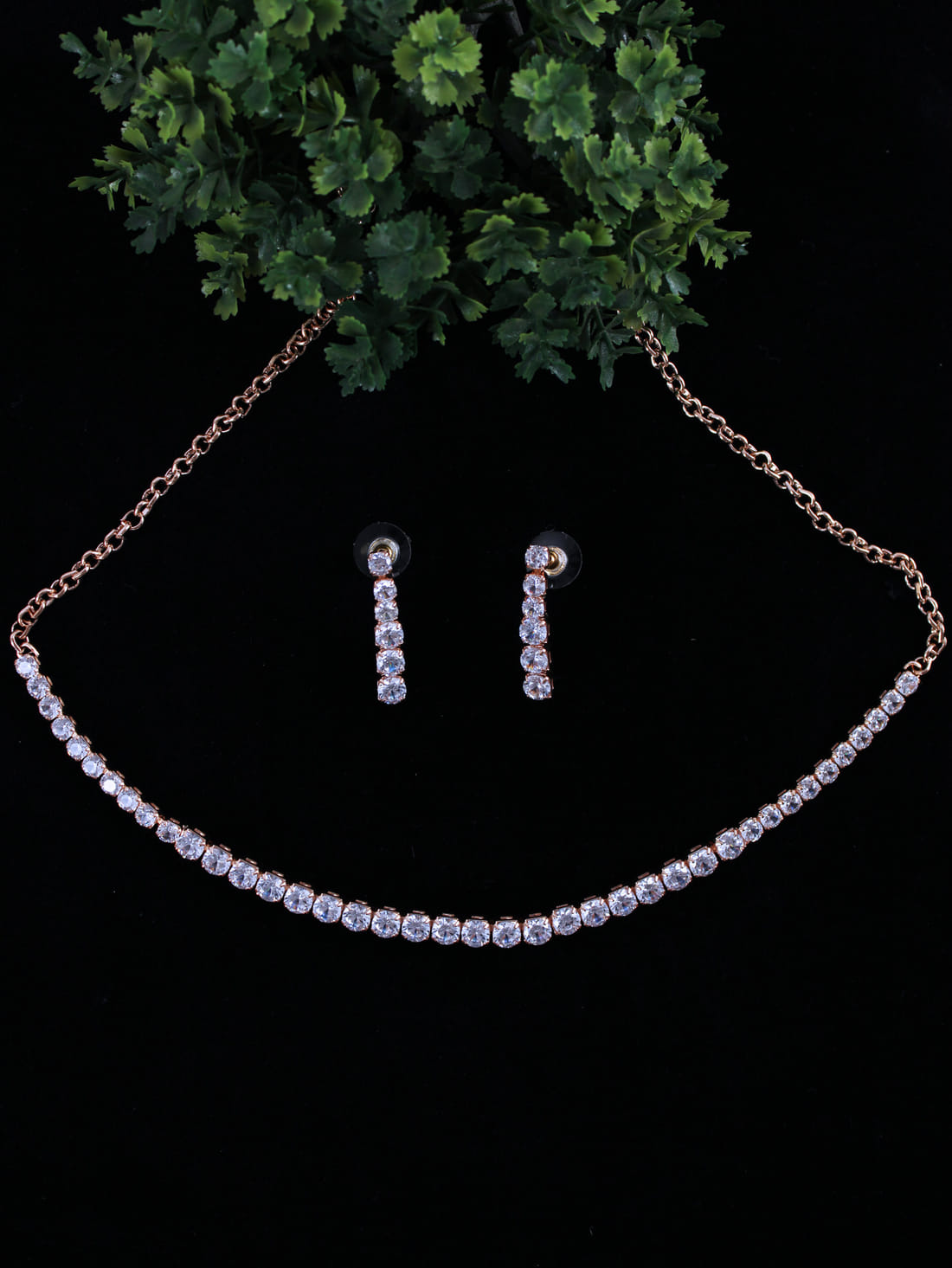 Rose Gold Color American Diamond Necklace Set