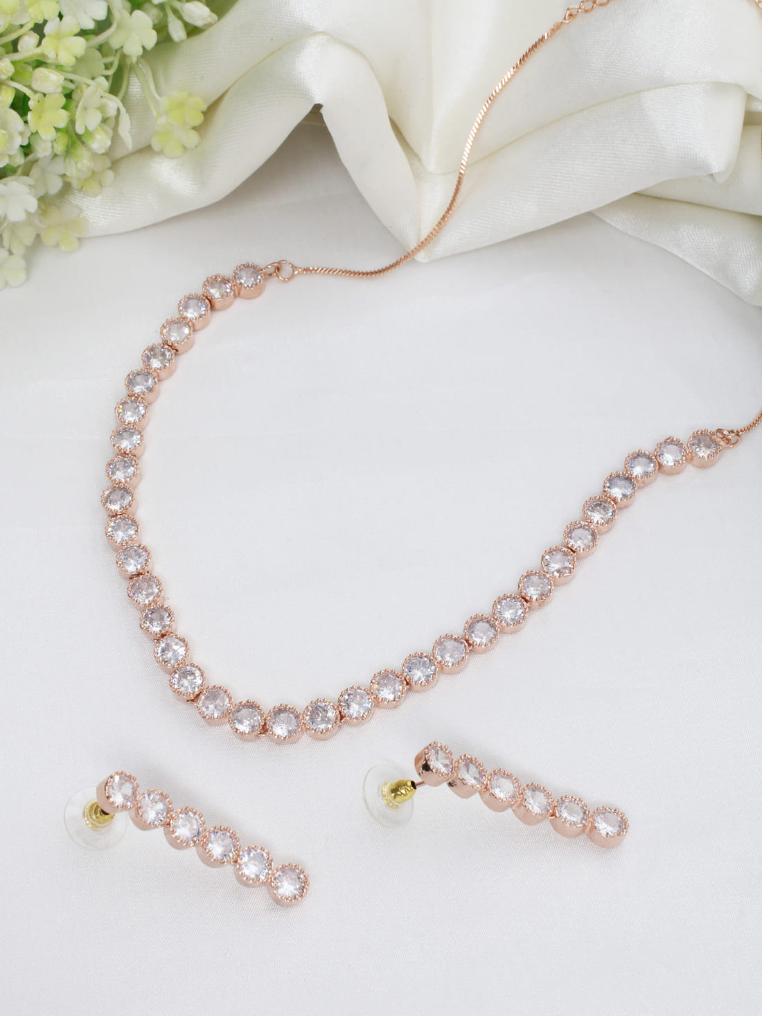 Rose Gold Color American Diamond Necklace Set