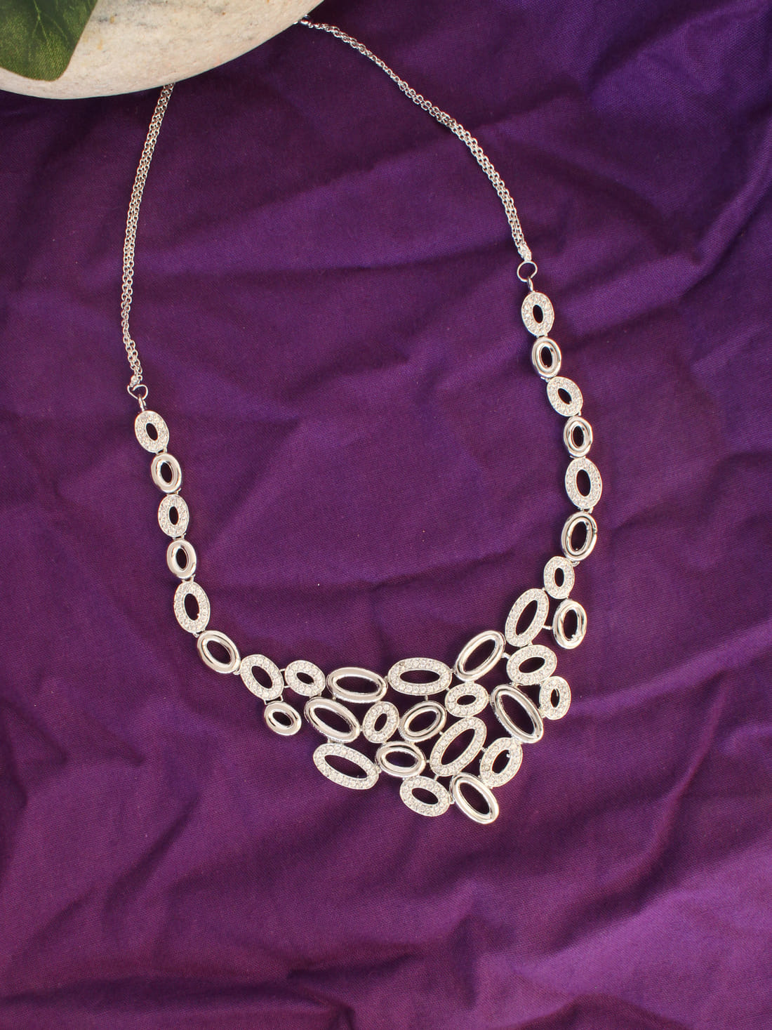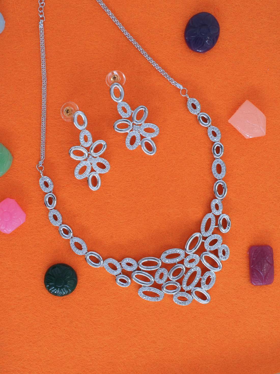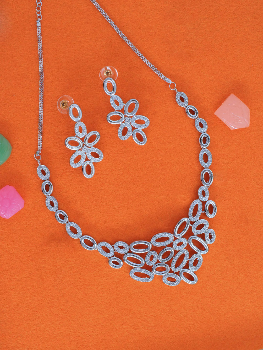 Silver Color American Diamond Necklace Set