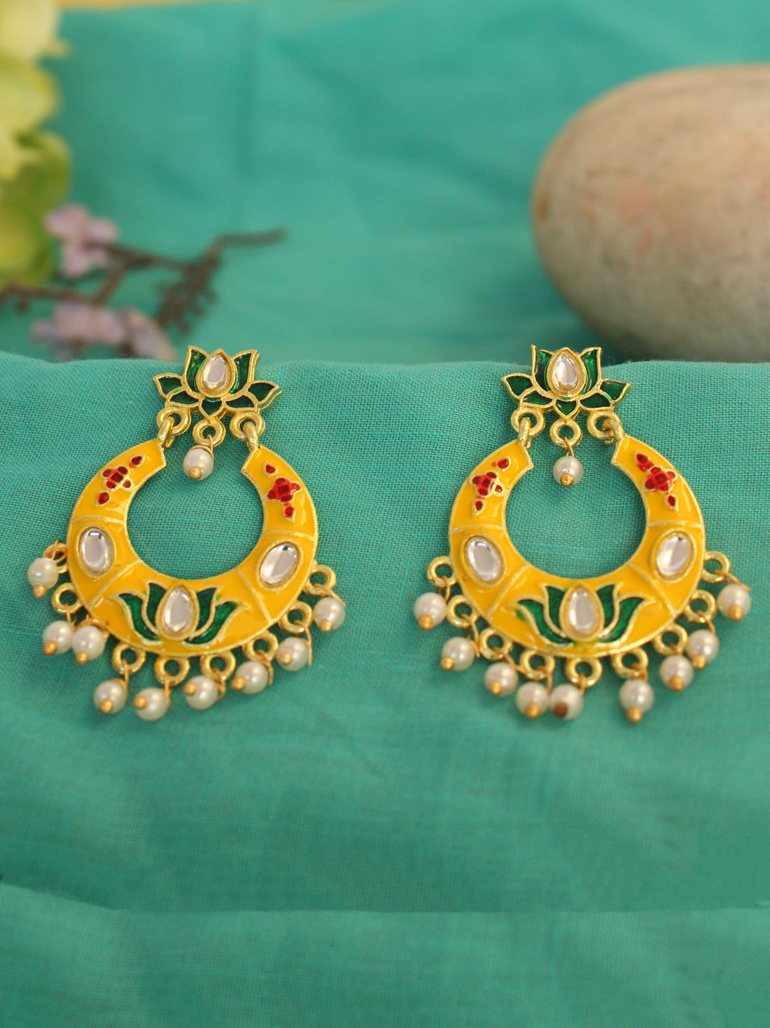 Yellow Color Meenakari Earrings
