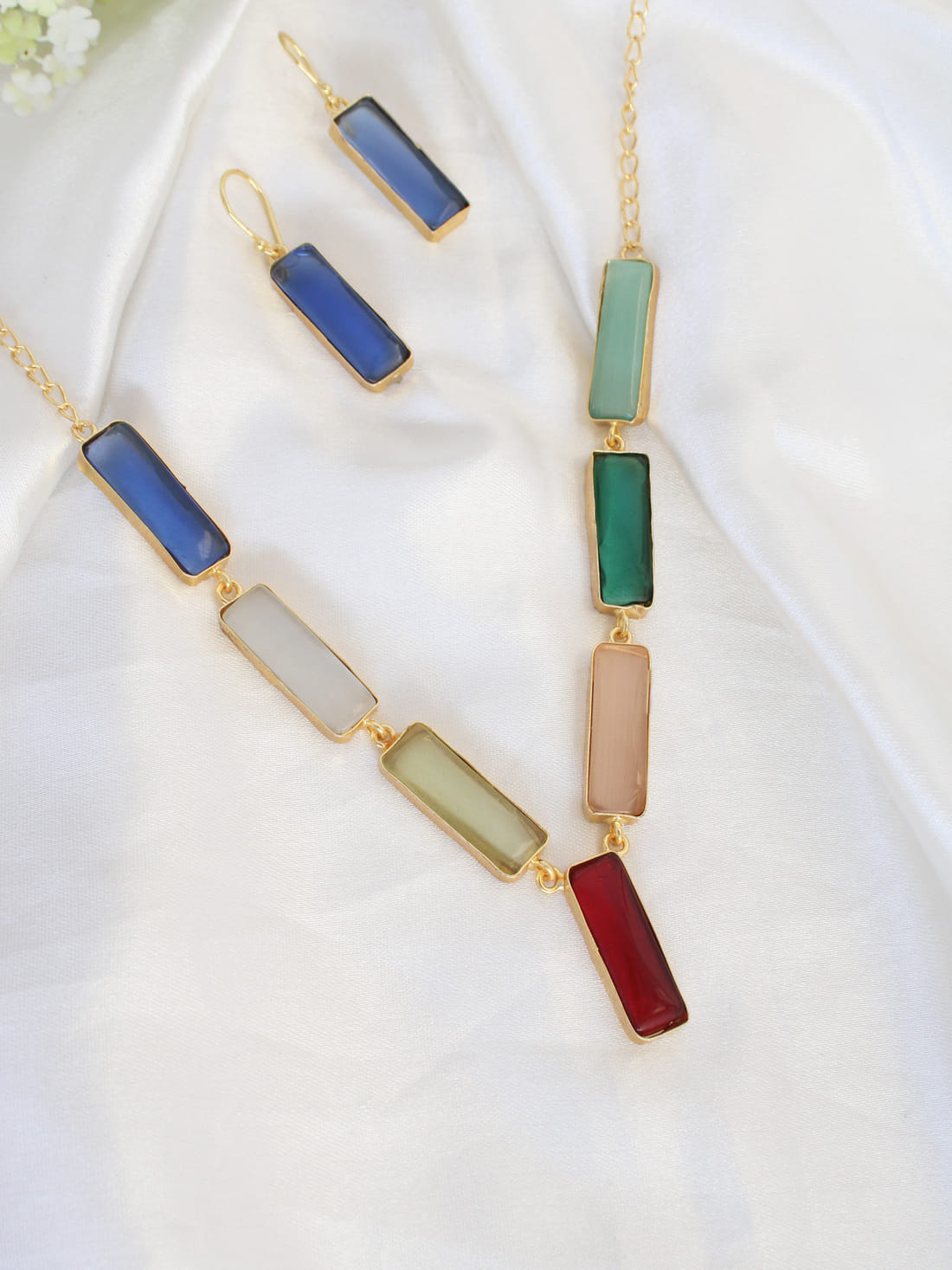 Multicolor Glossy Rectangle Necklace Set