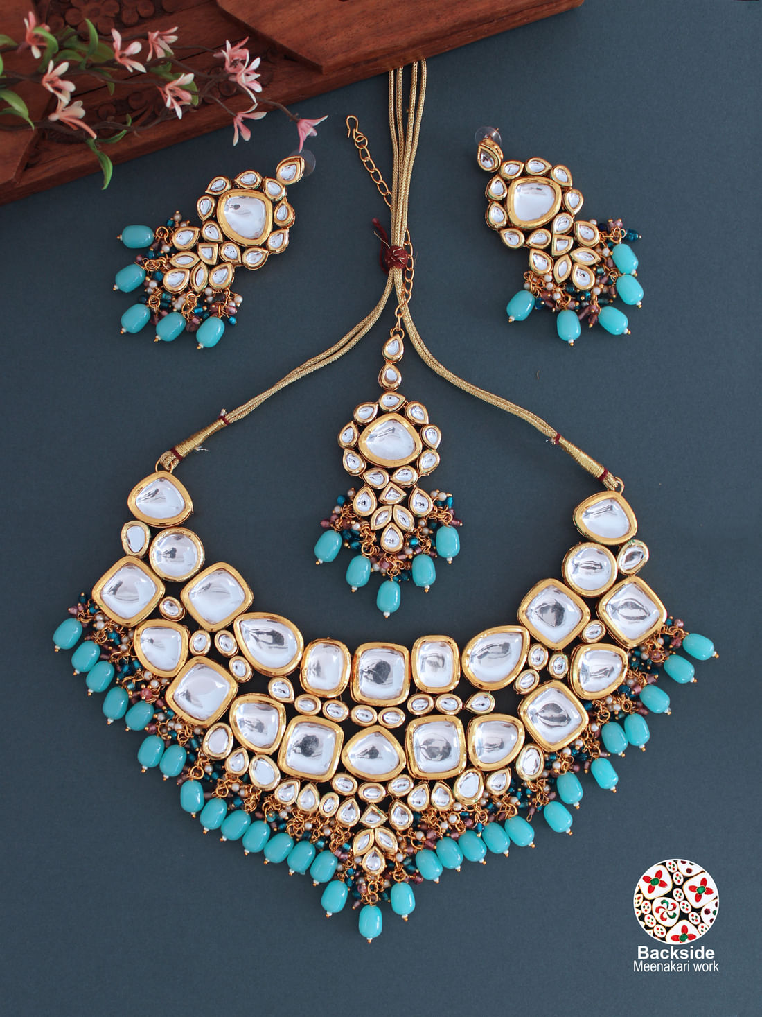 • Package Content: 1 Piece of Necklace, 1 Pair of Earrings,1 Piece of Maang Tikka