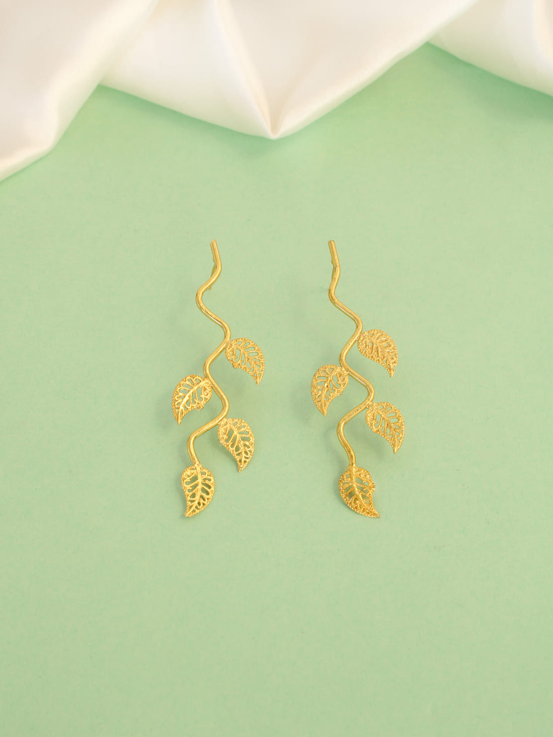 Golden Color Leaf Brass Earrings
